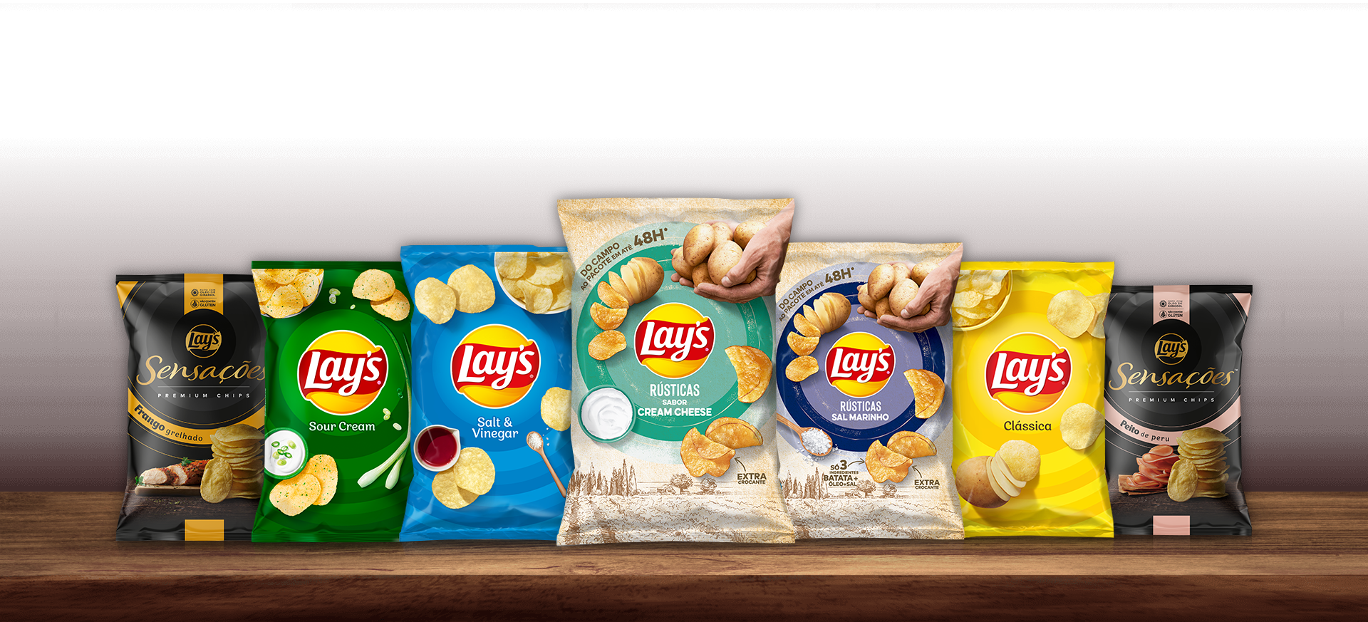 A gente conta pra você. Primeiro, nossas batatas são cortadas com casca e em fatias grossas. Em seguida, iniciamos um lento processo de fritura, responsável por deixar as batatas extra crocantes. Você encontra tudo isso nos dois sabores de LAY’S® Rústicas: Sal Marinho e Cream Cheese.